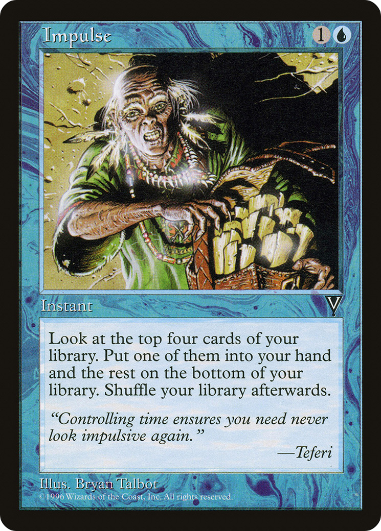 Look at the top four cards of your library. Put one of them into your hand and the rest on the bottom of your library in any order.