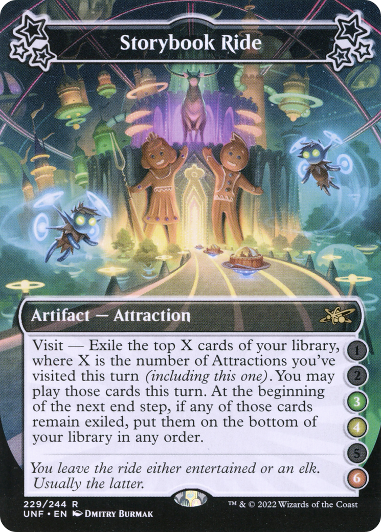 Visit — Exile the top X cards of your library, where X is the number of Attractions you've visited this turn (including this one). You may play those cards this turn. At the beginning of the next end step, if any of those cards remain exiled, put them on the bottom of your library in any order.