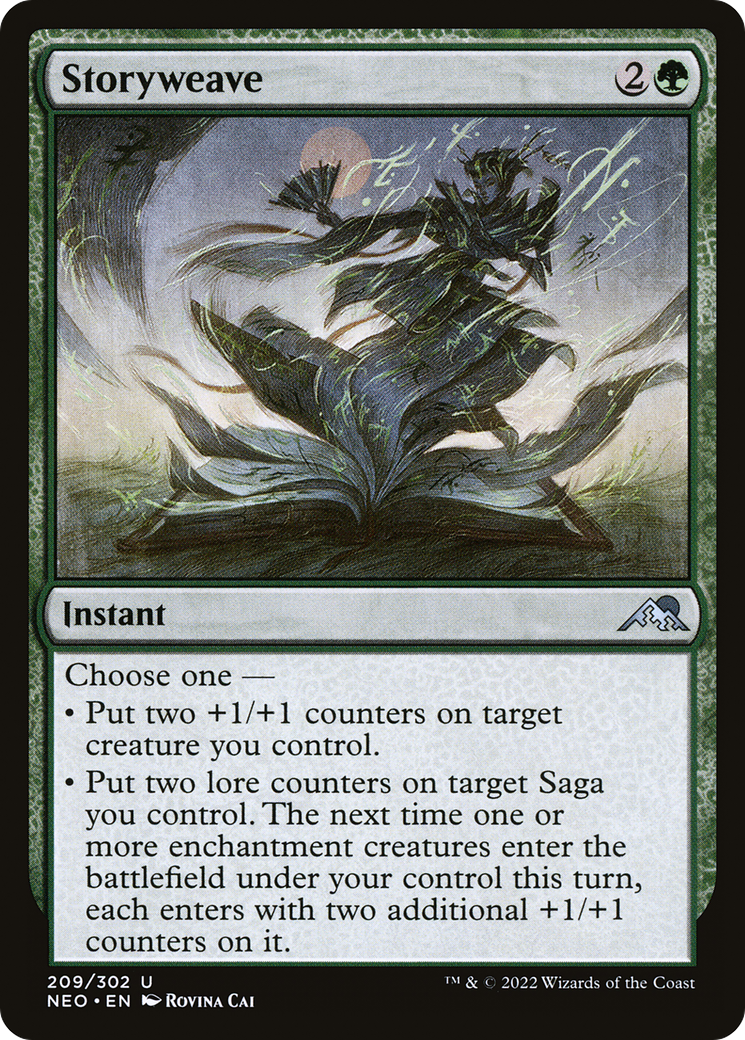 • Put two lore counters on target Saga you control. The next time one or more enchantment creatures you control enter this turn, each enters with two additional +1/+1 counters on it.